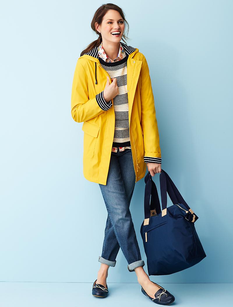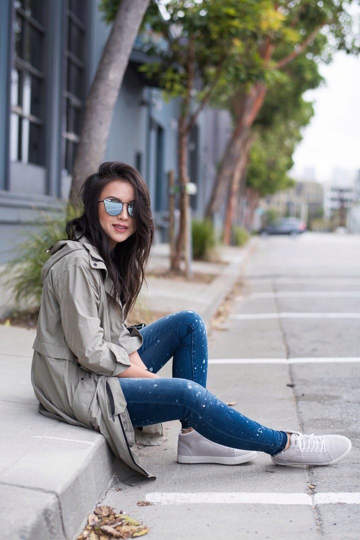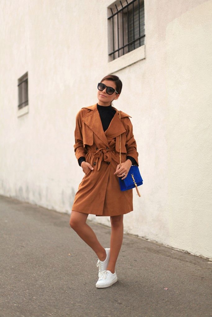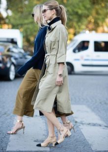 Modern women of fashion wear a raincoat with high-heeled shoes and sneakers, because today there are no restrictions.