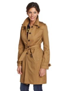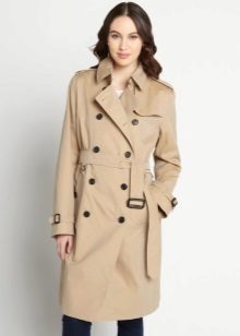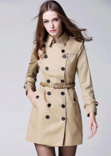 Its distinguishing features are double-breasted cut and the use of waterproof material.On the classic product there are 10 buttons on the front, and every pocket is buttoned on the button. On the belt and sleeves there are straps with buckles, on many models you can find shoulder straps. For classic models characterized by beige color scheme.