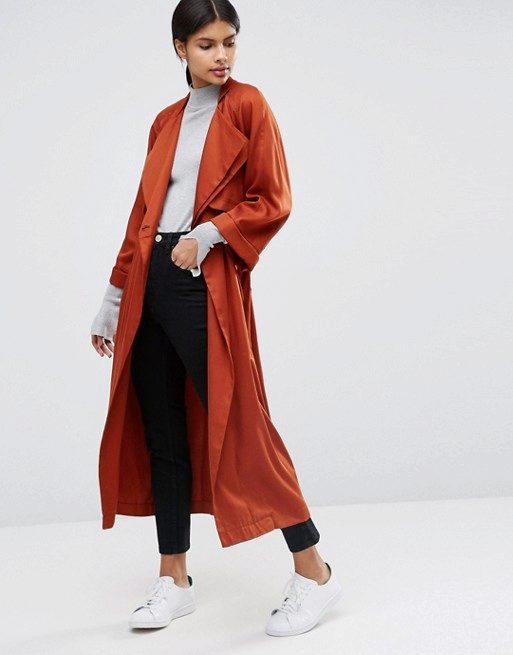 Lightweight stylish coat is ideal for a warm autumn. It perfectly protects against wind and allows you to continue to wear beautiful blouses and air jumpers. Such a raincoat can be combined with pants and skirts, it is suitable for all occasions.