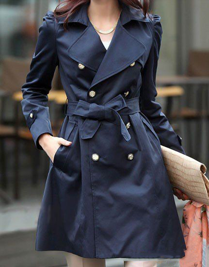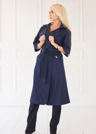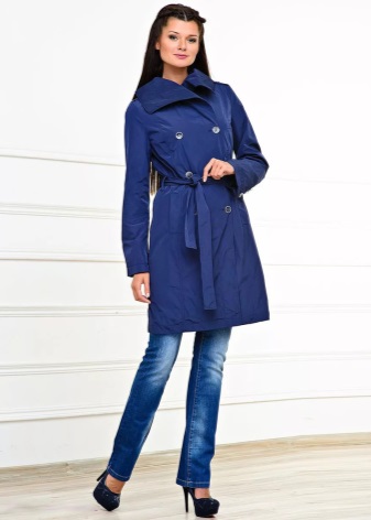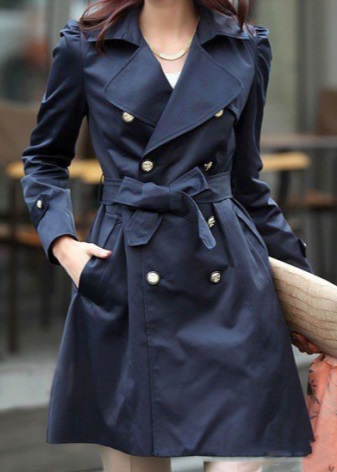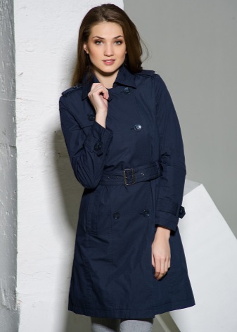 The raincoat of dark blue color is ideal for the autumn-winter period, on condition of a warm and mild winter. In the spring it is better to abandon it, preferring more delicate and soft shades.