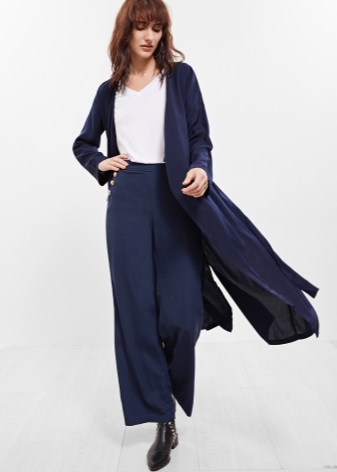 A dark blue cloak looks serious and strict, therefore it will be the perfect complement to a business suit or classic dress. To such a side it will be easy to pick up shoes and a bag; you can stop on a black or beige version, or pick up bright accessories.
