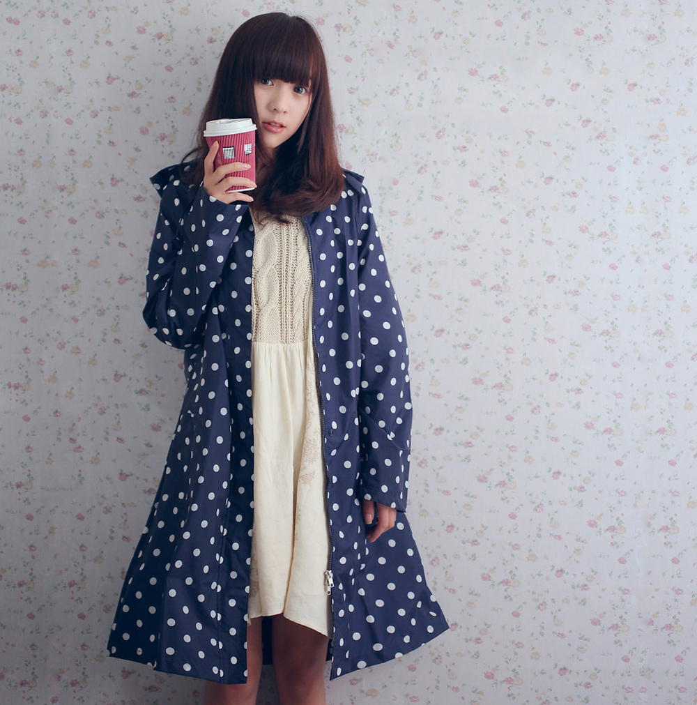 If you want to buy a raincoat with polka dots, give preference to seasoned delicate colors. It is better to abandon the bright flashy combinations, choosing a cloak in white peas.