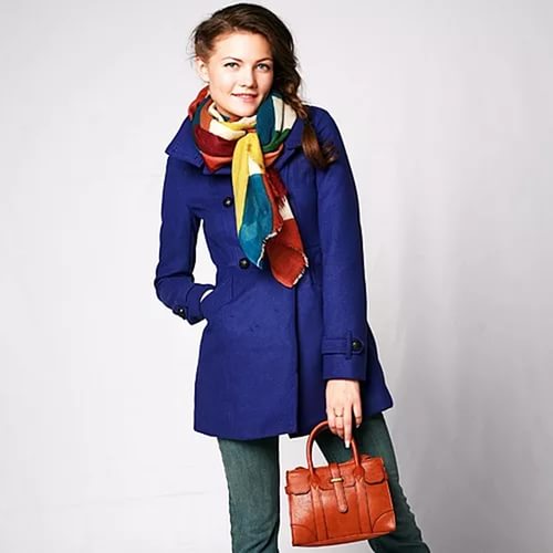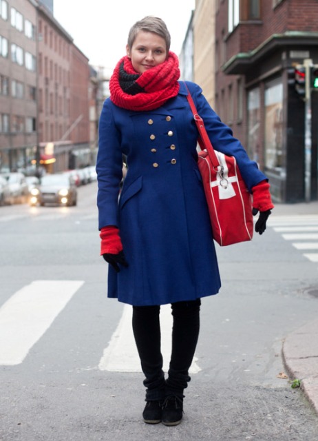 A bright blue cloak would be appropriate in almost any situation if you find suitable combinations for it. Best of all, it will look at girls who are not afraid to be in the spotlight.
