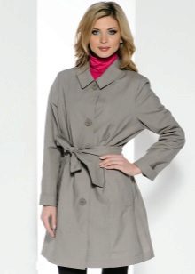 The raincoat - trench coat is made in a straight cut model, with a decorative element in the form of two rows of buttons, one of which can be fastened with a product. In addition, the product has a wide belt, emphasizing the waistline.