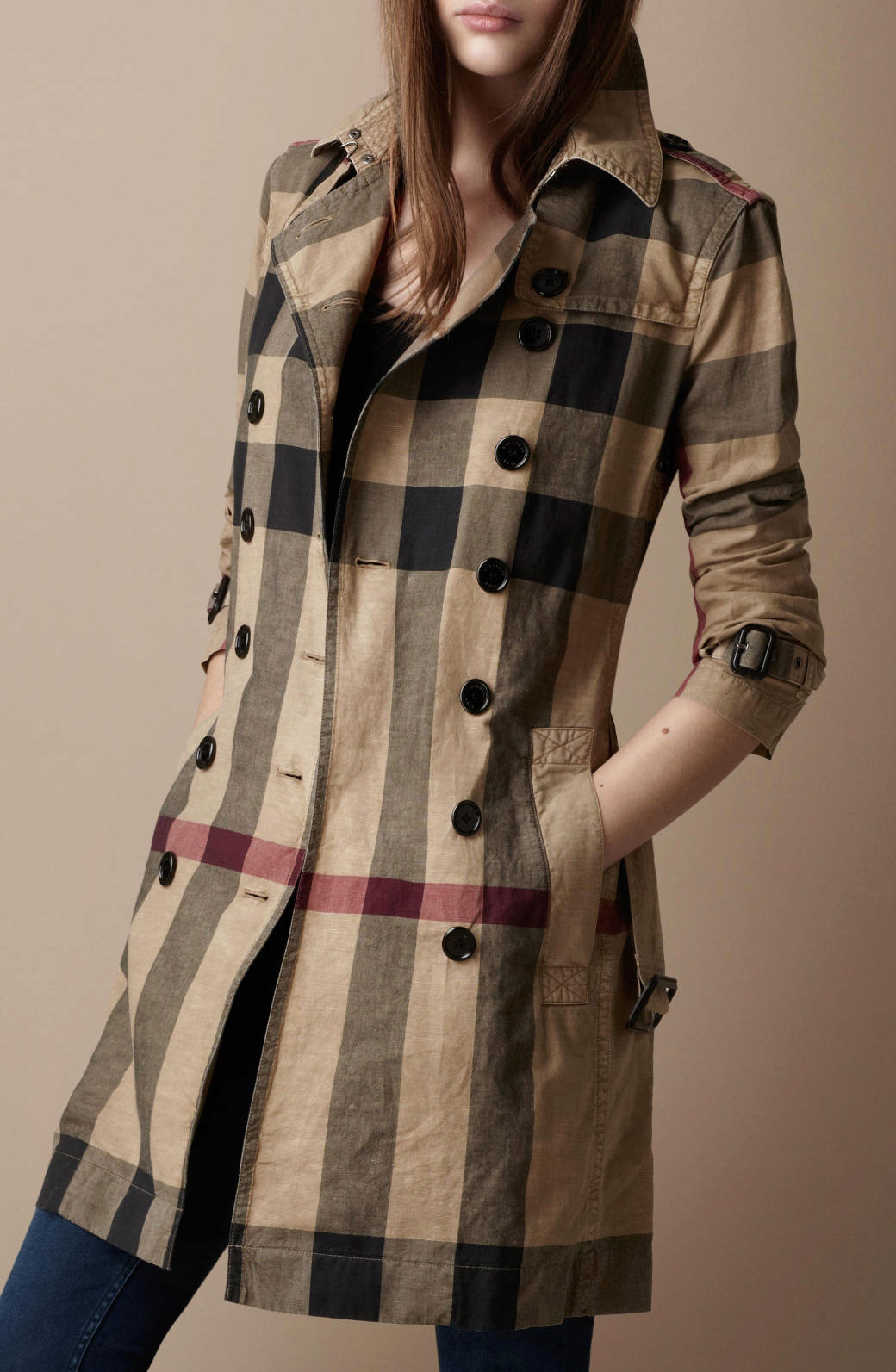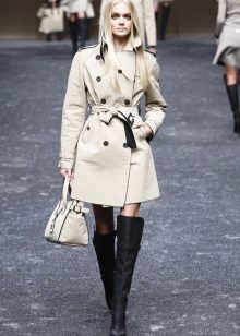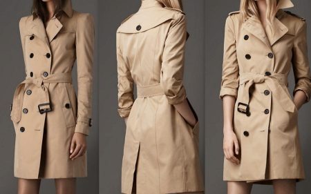 A distinctive feature of Burberry raincoats is a noble sandy shade, as well as the corresponding checkered color of the raincoat or lining itself.