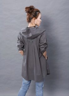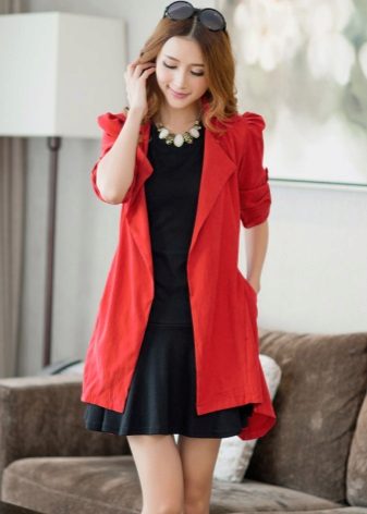 An elongated model, as a rule, reaches the knee, which allows you to wear a raincoat with short skirts or shorts, even in cool weather.