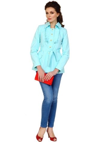 For example, short raincoats look great with pants, leggings and jeans, and also accept combinations with shoes on a flat sole in a sporty style.