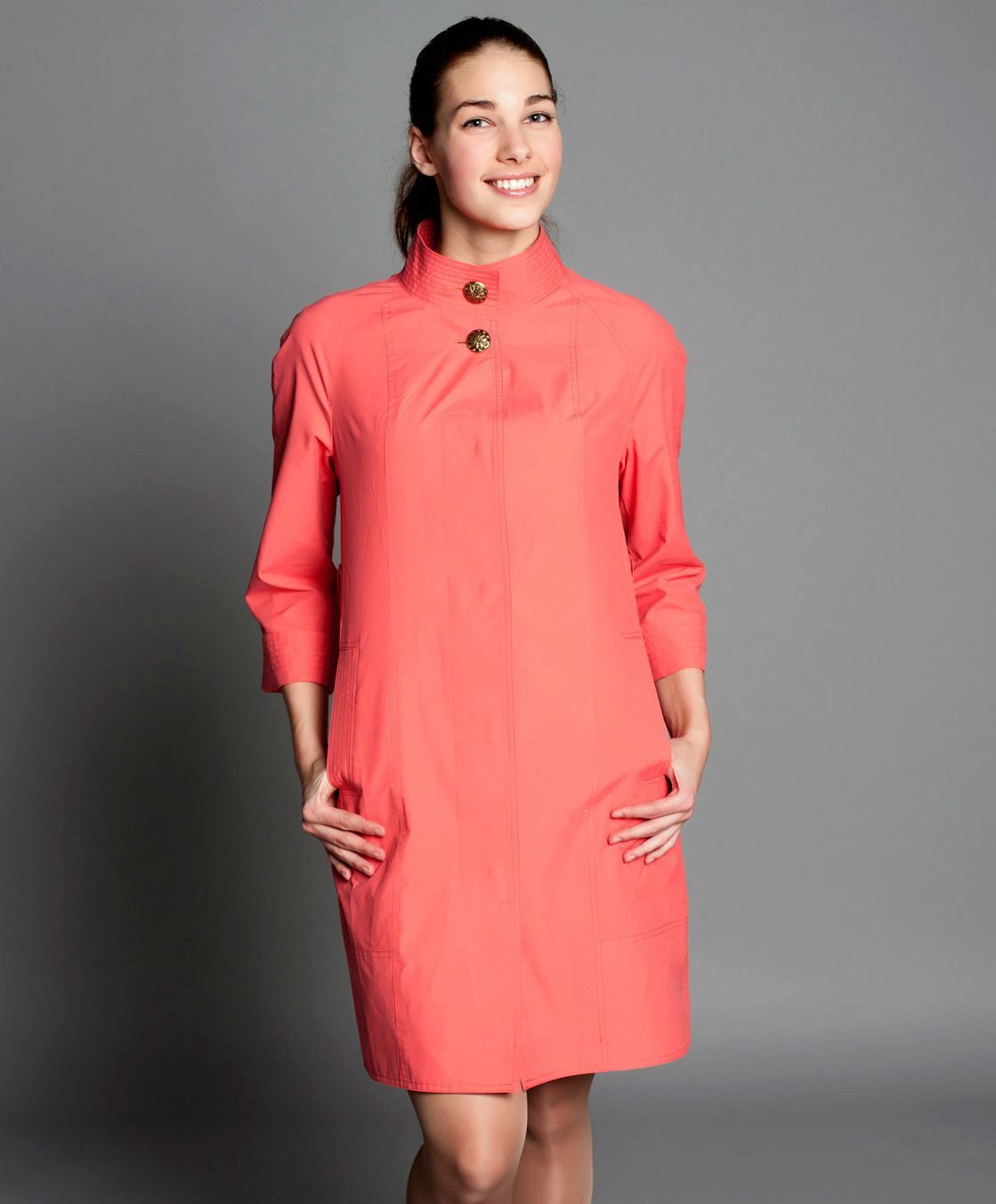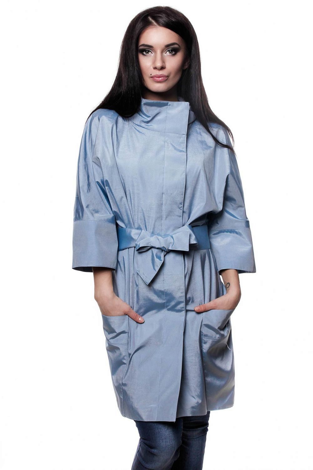 The classic cloak model has a length to mid-thigh, which makes it suitable for combination with any bottom.