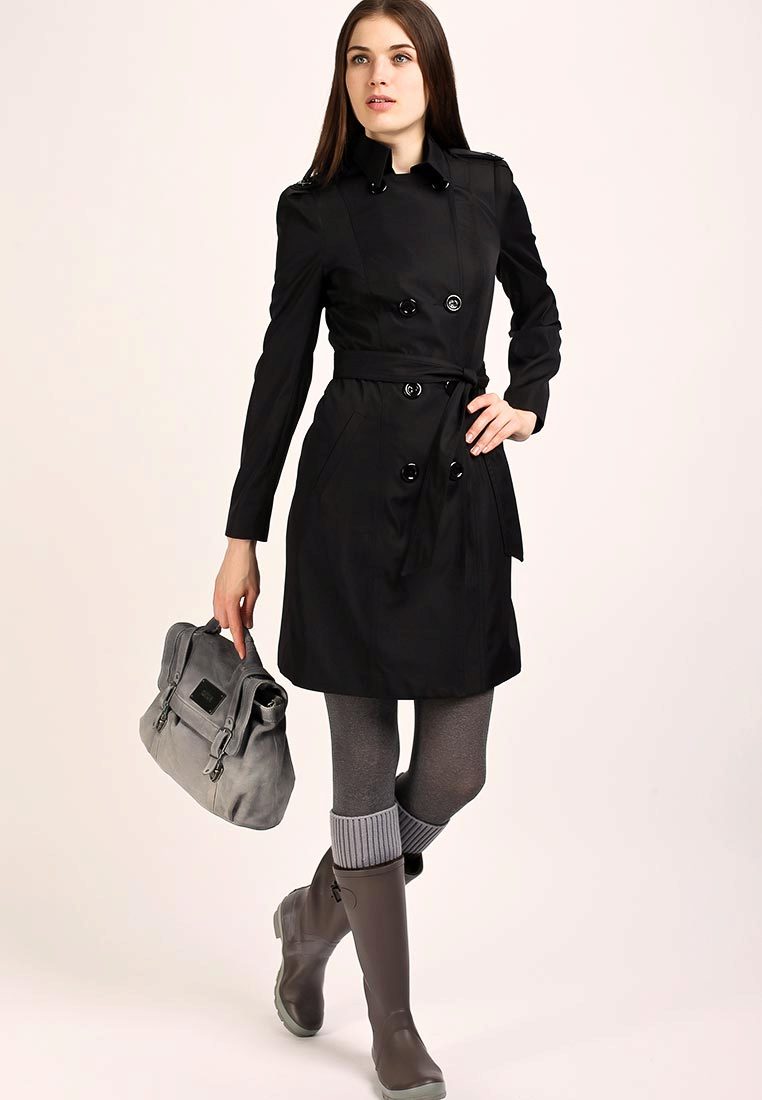 Black coat always remains in fashion and is a classic business element of any wardrobe.