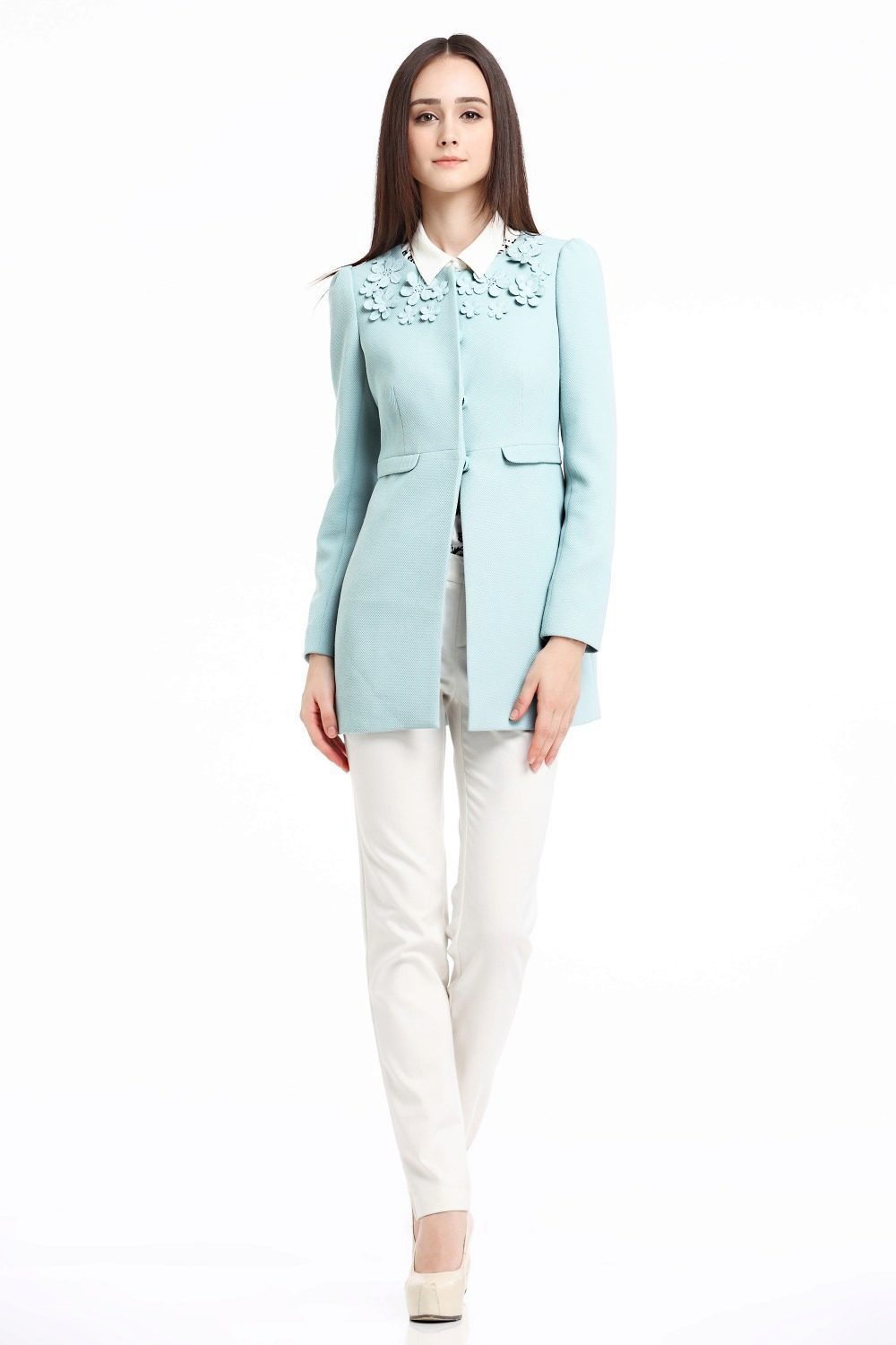 The fitted coat model has a more feminine look than the classic one. In addition, a fitted coat can have a shortened length or vice versa.