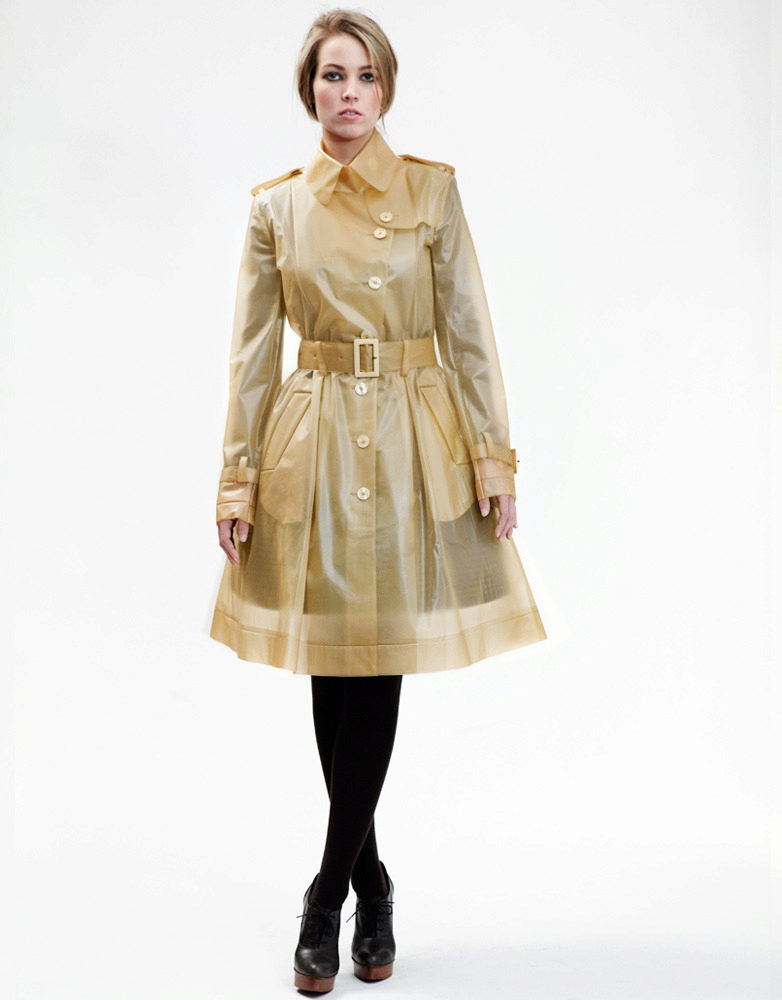 A raincoat on the floor are well suited for combination with evening dresses in order to protect it from dirt and dust.