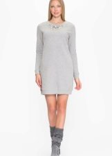 Accessories should first pick up to the overall style. One thing is clear - precious stones and metals will be inharmoniously combined with a sweatshirt dress. It is better to make a choice in the direction of simple jewelry. From other accessories hats and scarves, socks or stockings are quite available. Bags can be both more sporty and classic or small over the shoulder.