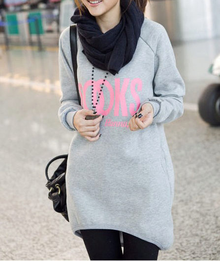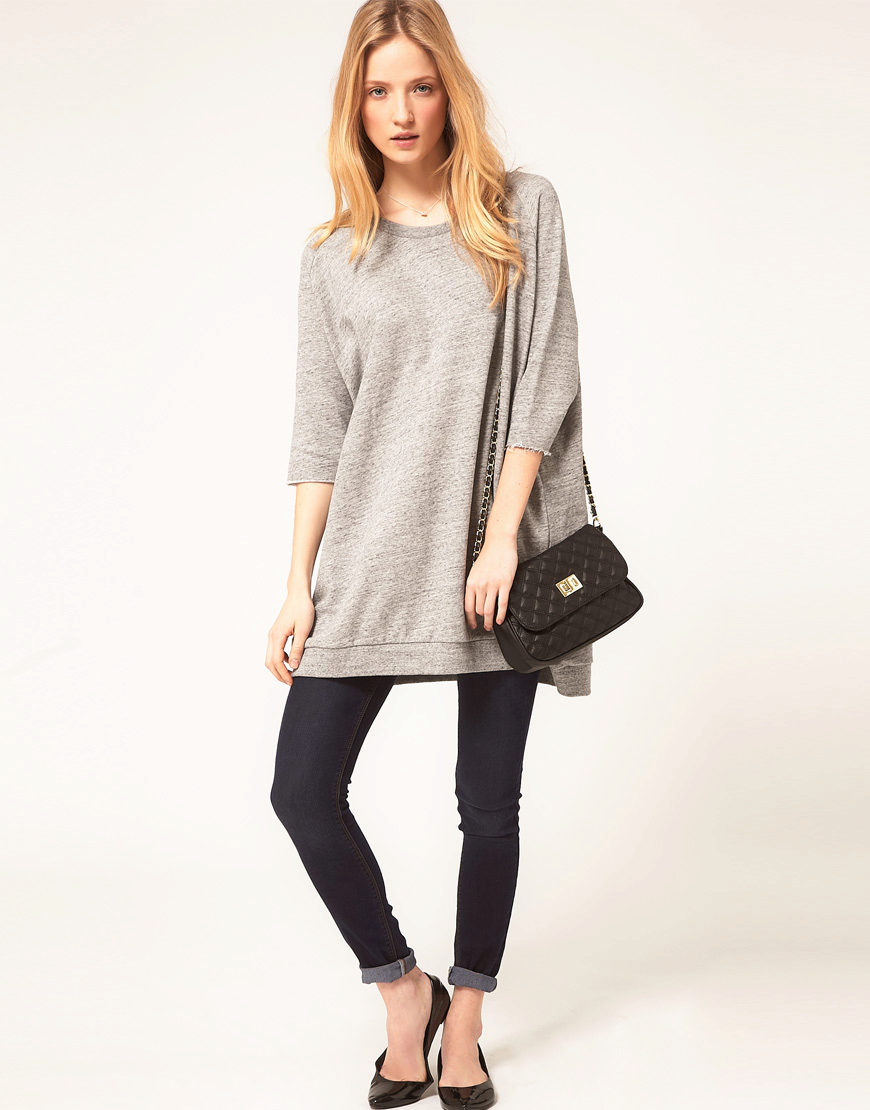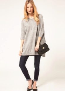 Shortened models can be worn over leggings. And so that the look does not seem boring, dilute it with accessories and shoes on a high platform. Many people believe that wearing dresses over jeans is unacceptable, but it definitely does not apply to oversize sweatshirts. The main thing is to have jeans that are rather tight and not compete with the dress for freedom to cut. Stylish dresses, sweatshirts with cuts and asymmetric length does not require virtually any additions. Choose the right shoes and all eyes will be on you.