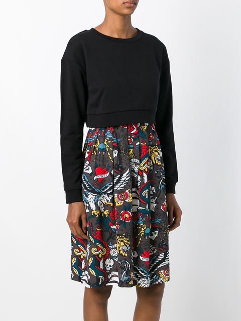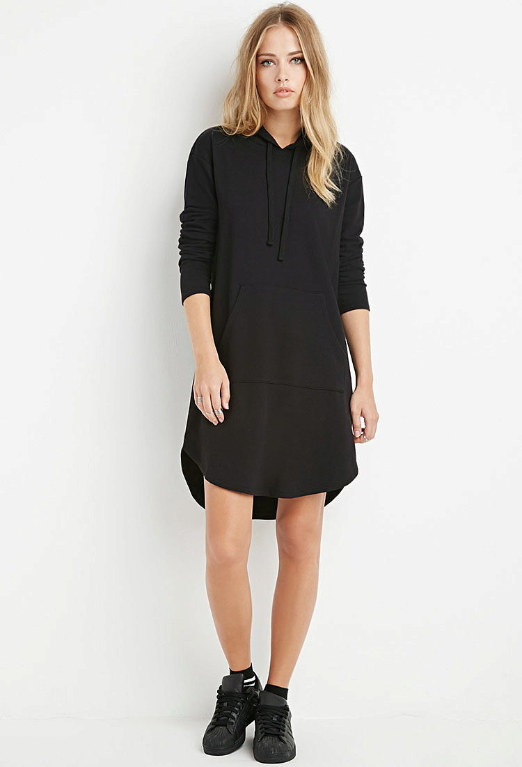 The combined style of the hoody dress is very original and sometimes it can be confused with two separate things, and not just one piece. We are talking about models that visually consist of several things - a cropped sweatshirt and a skirt coming out from under it.