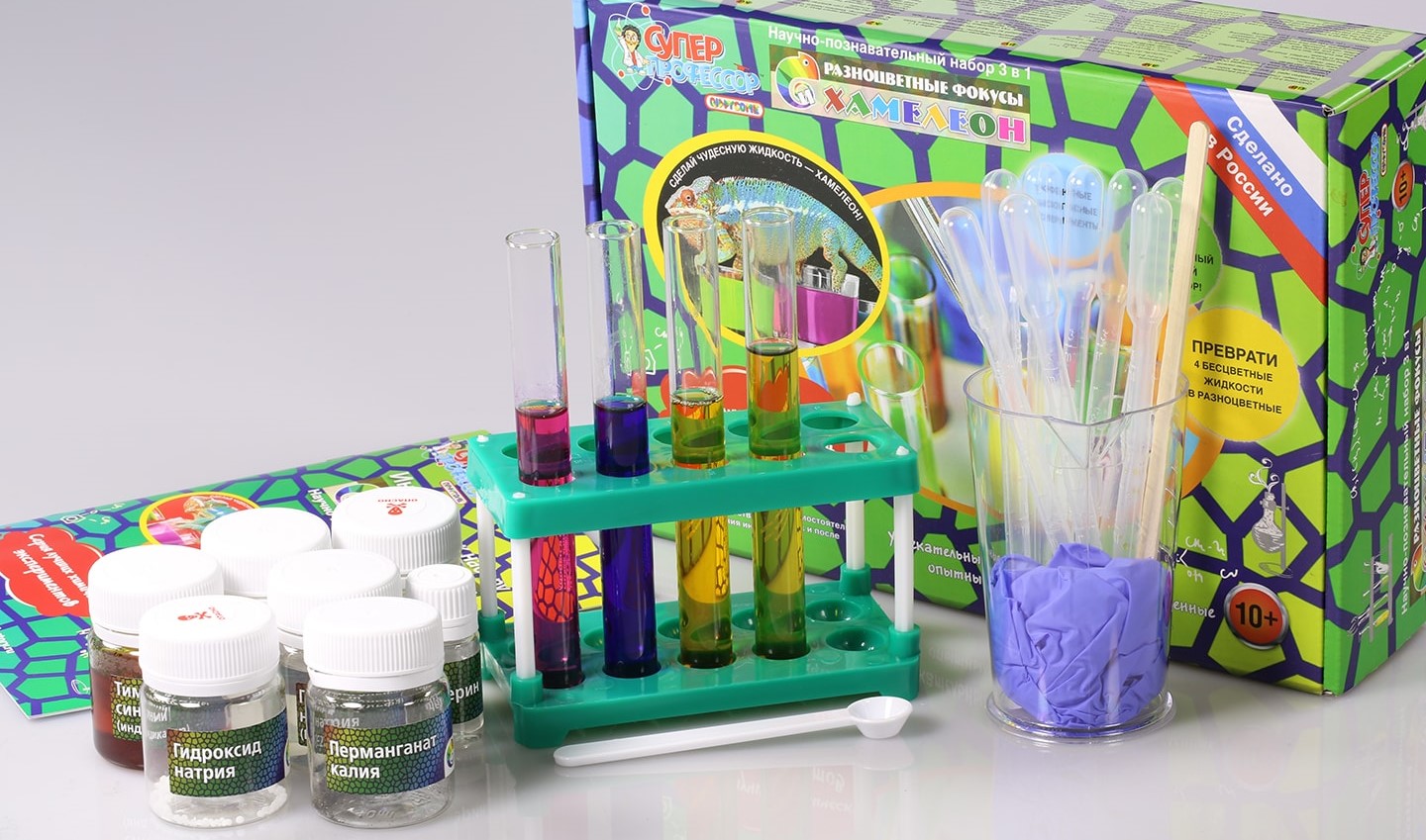 A child will show how to run a boiled egg in a bottle, how to inflate a huge package to one person with a single exhalation and many other fun and amazing things. The number of tricks in one set is from 10 to 120 pieces. You can choose a set that is suitable for the level of complexity and cost.