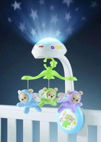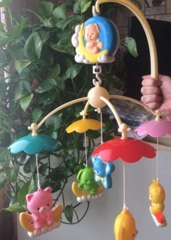 The musical roundabout which easily fastens on a side of a bed - This is a great option for a gift. Toys can be soft, plastic or rubber. Choose the version of the mobile, which is equipped with a volume control and has the ability to additionally record tunes. In addition, the kid will enjoy such a carousel, whose toys can be easily removed and hooked back.