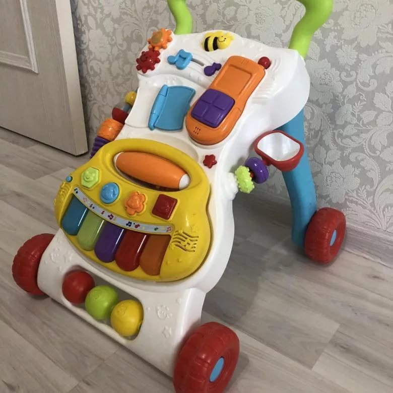 Please note that walkers are equipped with removable covers, as the soft seat gets dirty very quickly. In addition, you can choose the option with a music panel, which is detached if necessary. Due to this, the panel turns into a table and it will be possible to easily feed the child fruit puree or porridge right in the walker.