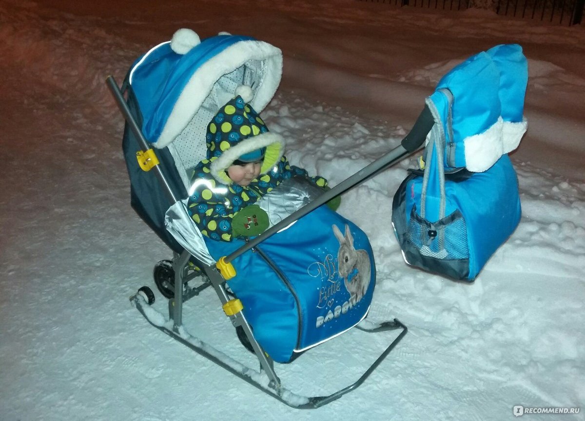 Sledge can be a useful and long-awaited gift for the child. Today you can find the most unusual options. Pay attention to those that are equipped with a special pen-pusher, so that parents can easily carry the baby in the snow. And also sleds for children up to one year should be equipped with a bag for additional warming of the feet, a strong and high back, seat belts and armrests.