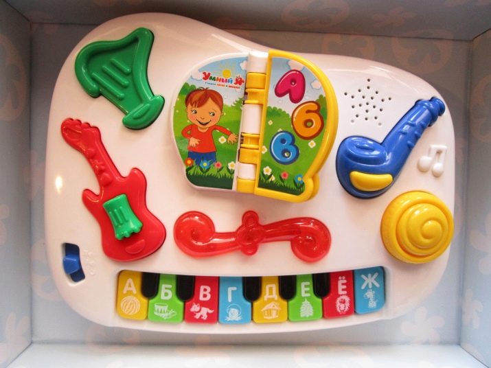 Any musical toy can be a great gift for a child up to a year. It may be compact pianowhere you can play tunes, and it also knows how to make animal sounds. And also you can choose musical ball. This soft ball is equipped with buttons in the form of animals and when you click on them, it makes sounds of birds and animals. You can also choose children's phone, who tells tales and sings songs.