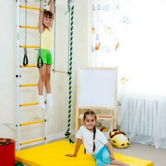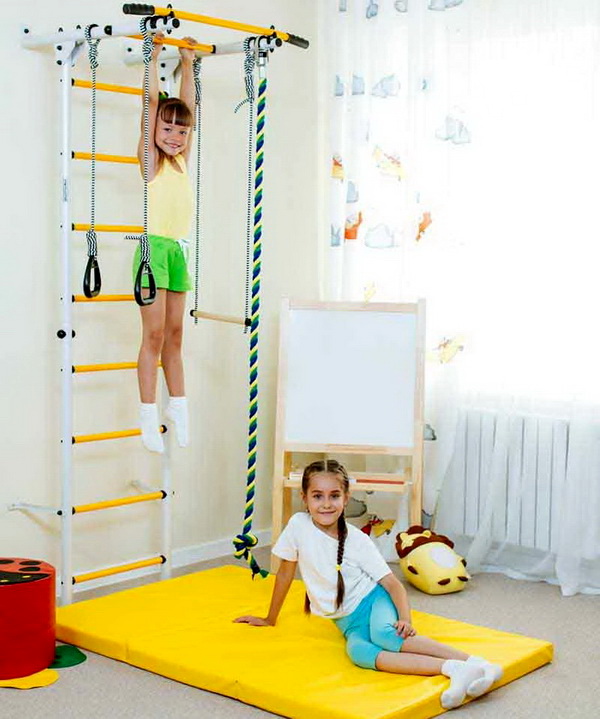 A great gift for an active daughter or granddaughter will be sports complex installed in her nursery. As a rule, in addition to the Swedish wall, it is completed with a rope ladder, rope, trapezium and rings. Downstairs for safety is important to place the mats. Other interesting options are Purchase a dance mat, frisbee, twister or children's darts that do not use sharp darts.