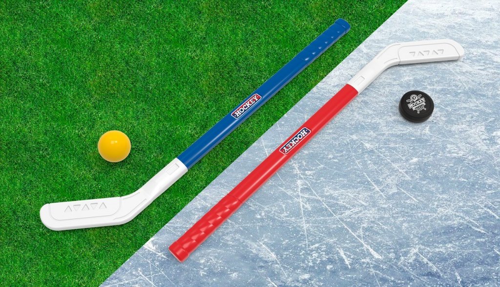 - hockey player - stick, puck and protective equipment;