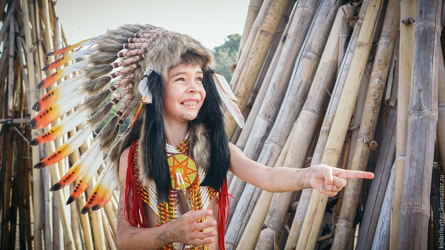 - Indian costume with feather headdress, belt and tomahawk.