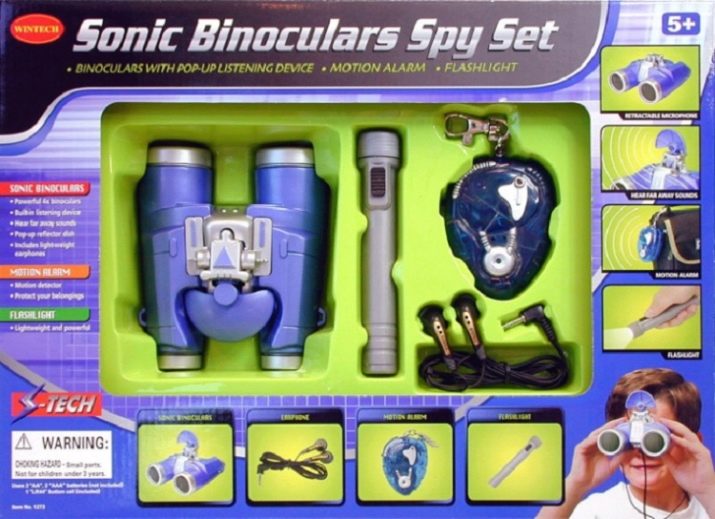 - Detective set with binoculars, headphones for listening and a suitcase with reagents for taking fingerprints.