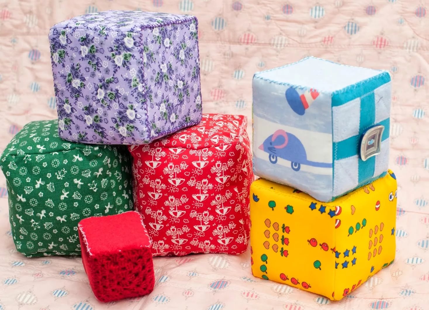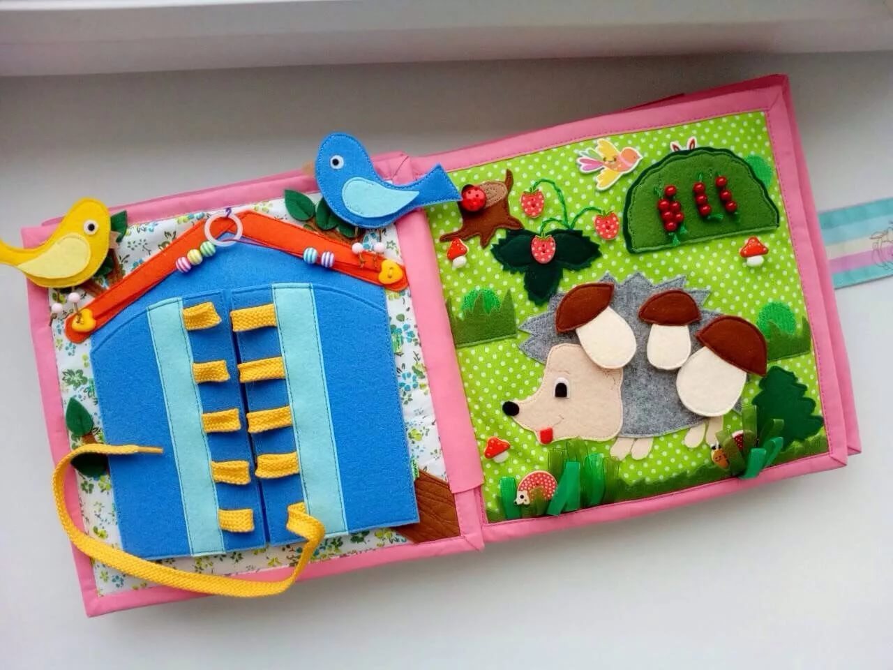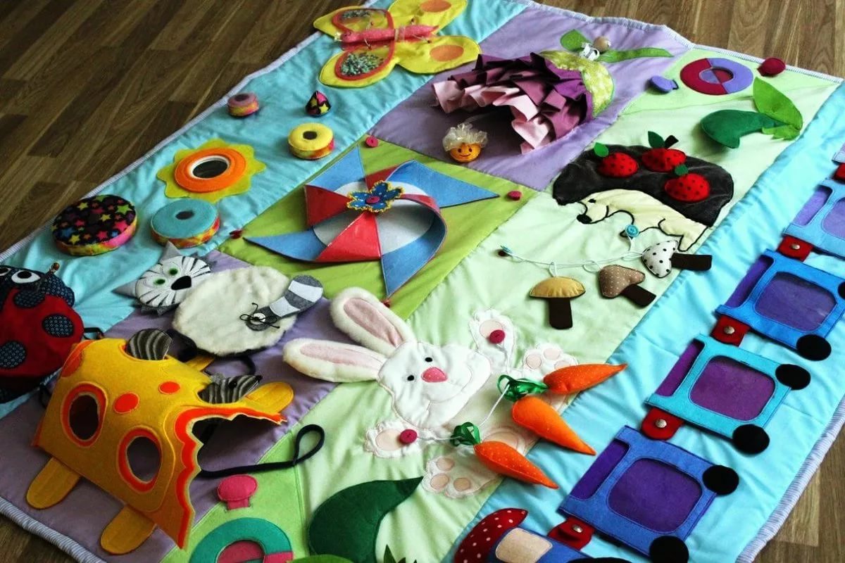 - fit any toys for the baby - children's books from safe materials, soft large cubes, bright musical mobil for the crib, mats for development;