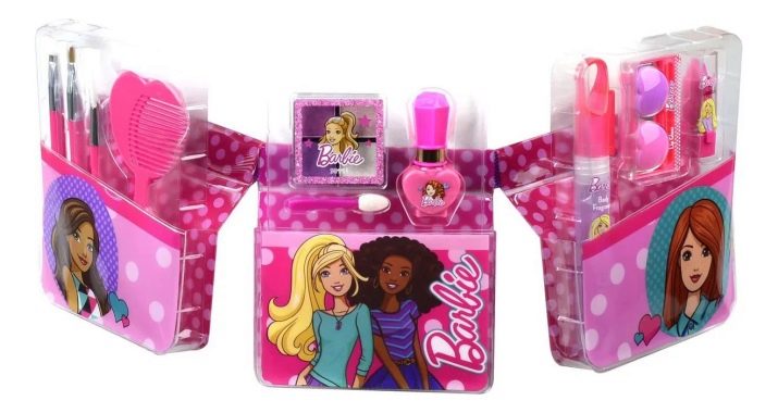 - If a girl already has 3-4 years old, then she can choose baby cosmetics as a gift. It is necessary to buy children's cosmetics kits only in proven markets, so as not to doubt her quality and to be completely sure that she will not harm the girl.