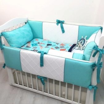 Bed linen with sides will never be superfluous as a spare set. Coloring choose, suitable for the boy. Fabric - only natural cotton. Instead of tolokars and walkers, it is better to give a soft ottoman, a chaise longue with seat belts and an orthopedic seat. It will be very useful if such a thing is equipped with a motion sickness mechanism, an arc with pendants-toys and built-in melodies.
