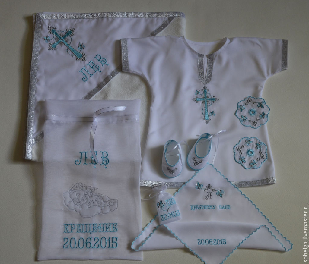 Some things are given at discretion. For example, if it is cold, instead of a baptismal shirt, a warm blouse is allowed. The color does not fundamentally choose white, you can sky blue, cream and their shades. Baptism kits are often ordered with a personalized embroidery. Mandatory attribute for the procedure of baptism - a baptismal towel, or the so-called Kryzhma. For tailoring usually use a dense white material, most often cotton, bleached flax.