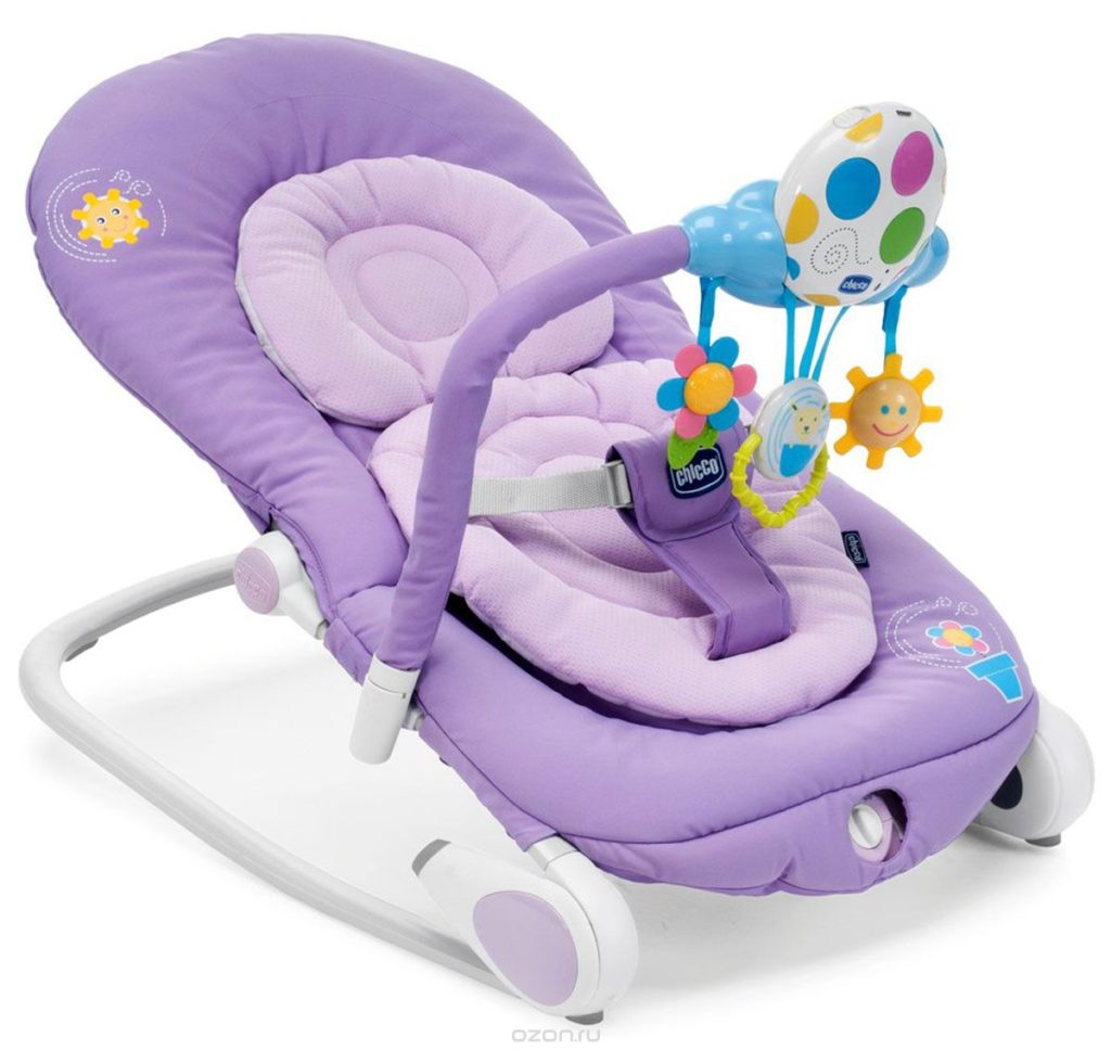 A good portable chaise lounge is a great gift for mom and baby. It is easy to transfer the crumbs from place to place. He can sleep there in front of his parents, securely fixed by the seat-belt system. Often in the set are hanging toys, it will be boring for a growing baby to spend time watching them.