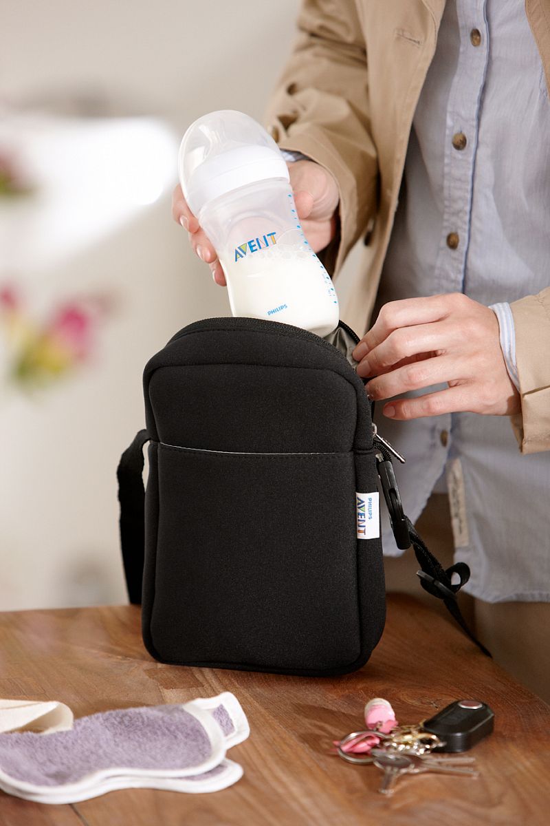Low cost purchase small special thermobags for bottles. In it you can save some water (milk) for a baby for a walk at exactly the temperature that is comfortable for him to drink.