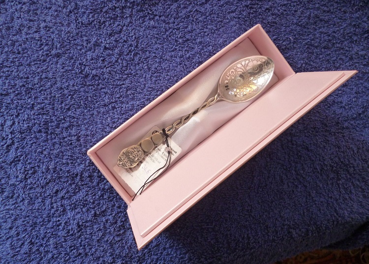 - Memorable spoon. A silver device with a stretch can be called an original gift, but to say that this tradition is so alive, as before, is also impossible. The spoon was often given "at first tooth", but now this binding has disappeared and you can give it just for birth. It must be in a beautiful case, possibly engraved, so it will be a royal gift for the baby.