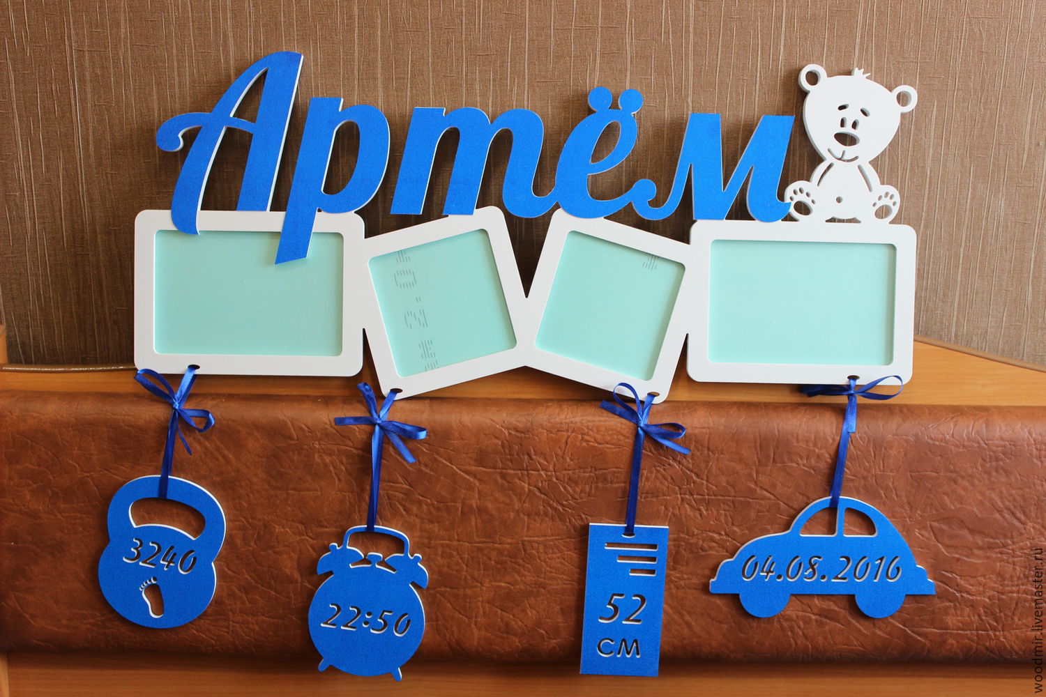 - Personalized photo frame. Several photo frames decorated with the name of the newborn may be appropriate in the decor of the baby's room. Inexpensive, but cute gift.