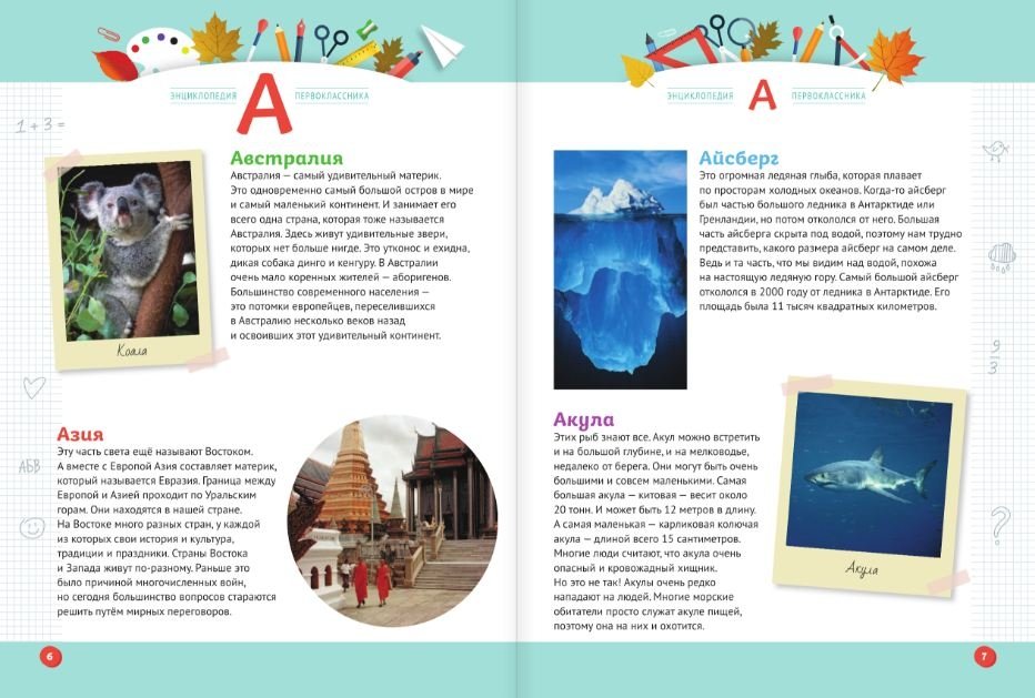 - Bright and colorful great encyclopedia first grader. Perhaps this is the best gift for children, because the book contains so many interesting things that it is sure to become an additional source of knowledge.