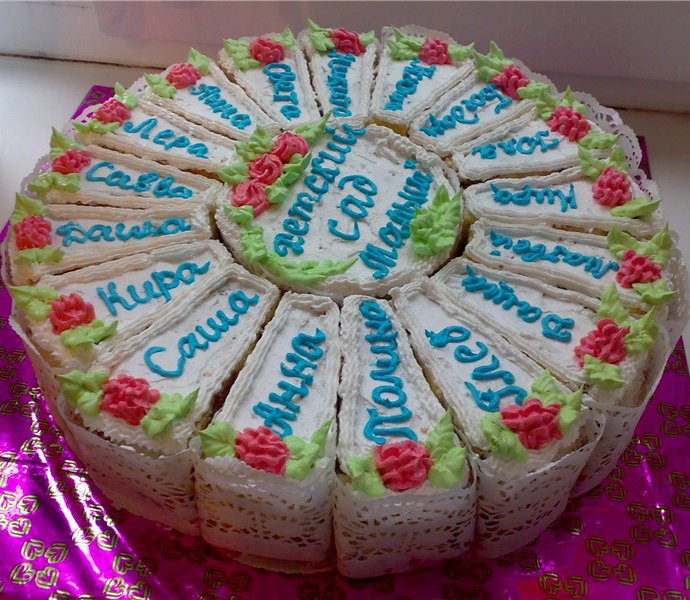 Do not forget about the opportunity to present children with gifts that will remind of kindergarten for the rest of their lives. These can be cups with the engraving of the names of children and pleasant words, for example, “the most obedient”, “the most active”, “the most artistic”, “the most economic”. It’s nice to get a graduation and a puzzle with a photo of all the guys in the group, and a photo album with all the bright moments of kindergarten life. Such solutions as a T-shirt with the group's emblem, a notebook and an album for drawing with it or the same bag for interchangeable shoes will also be suitable. Be sure to cook and a big cake with figures of children or their names, placed in such a way that each child receives a personal piece.