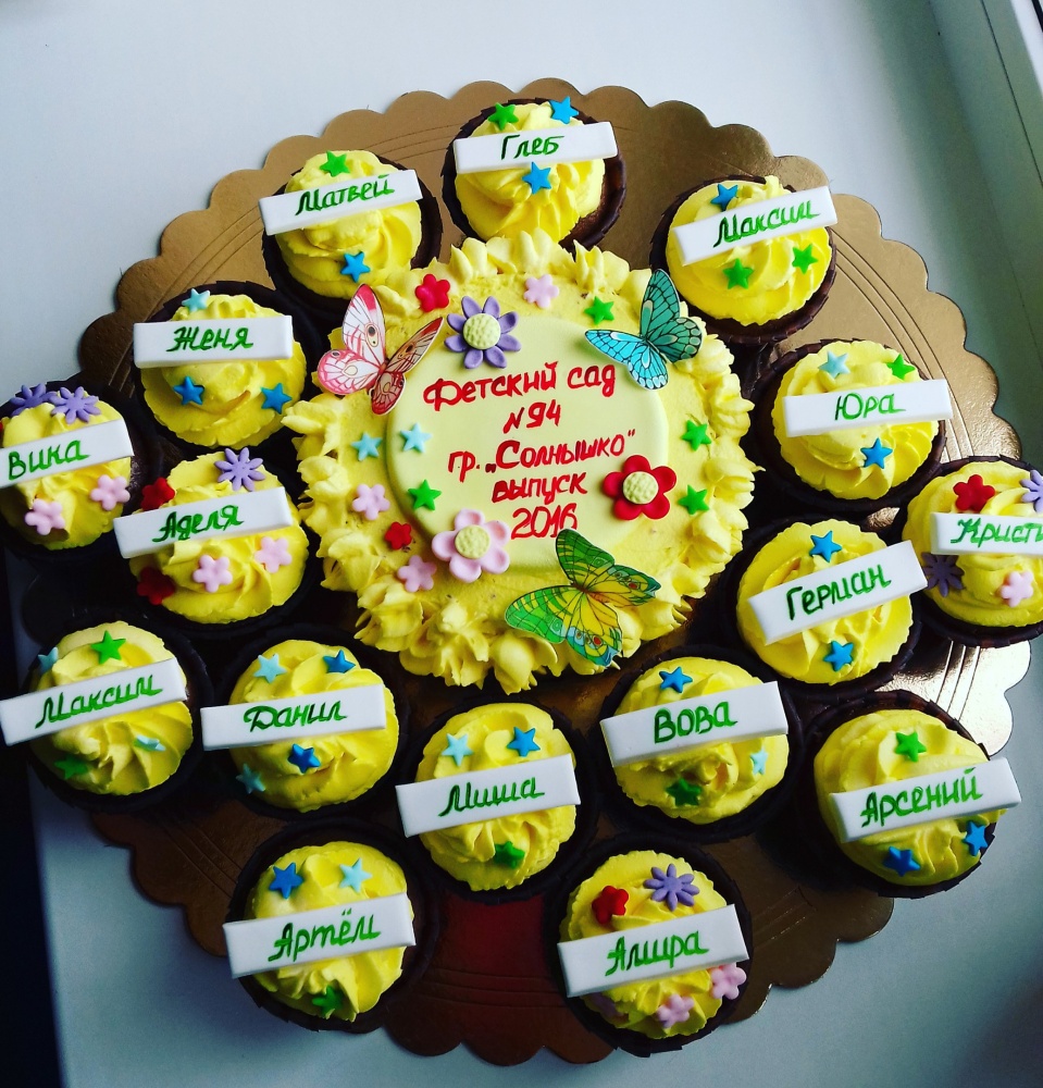 Goodies can be decorated with a symbol of kindergarten, as well as the name of the child.