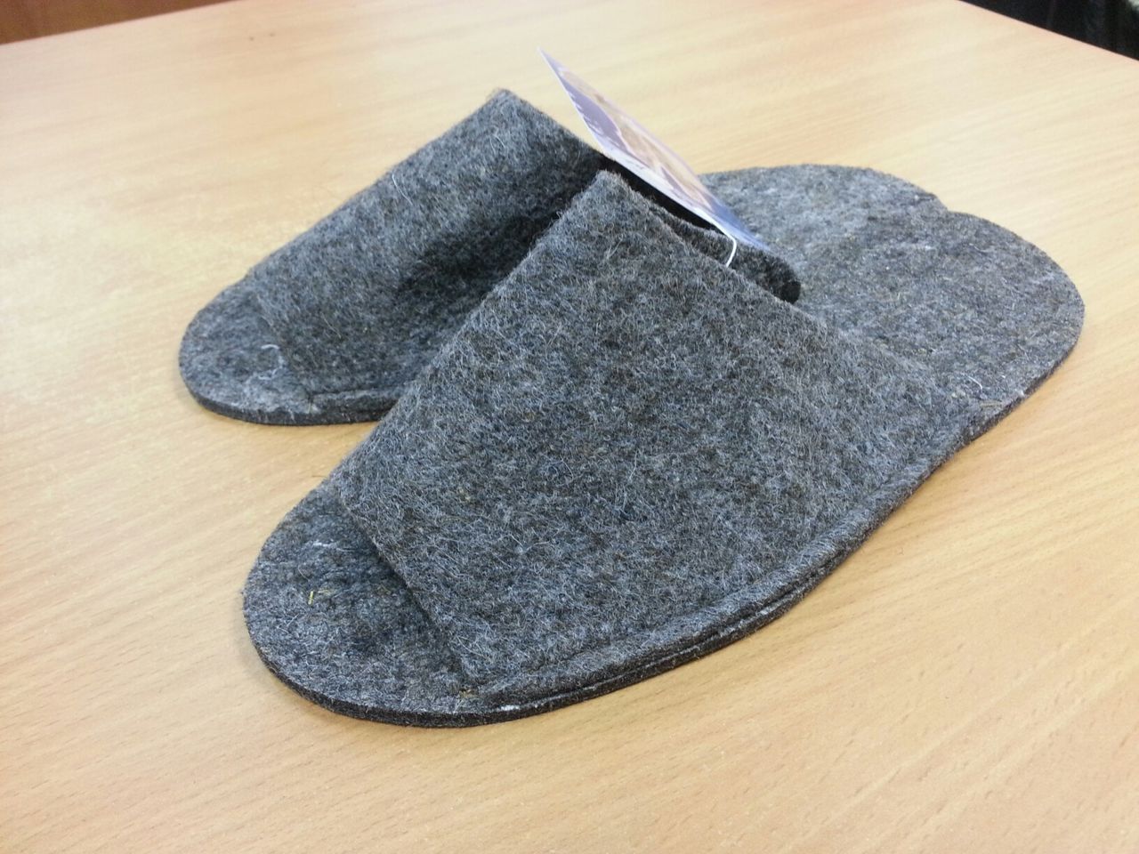 - Felt slippers or shales. These items are needed in order to protect the soles of the feet from the high temperatures of the heated floor, as well as to protect against fungal spores that can appear in a damp room and cause skin or nail disease.