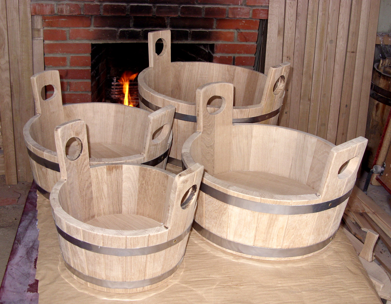 - wooden benches, tubs for water, a ladle;
