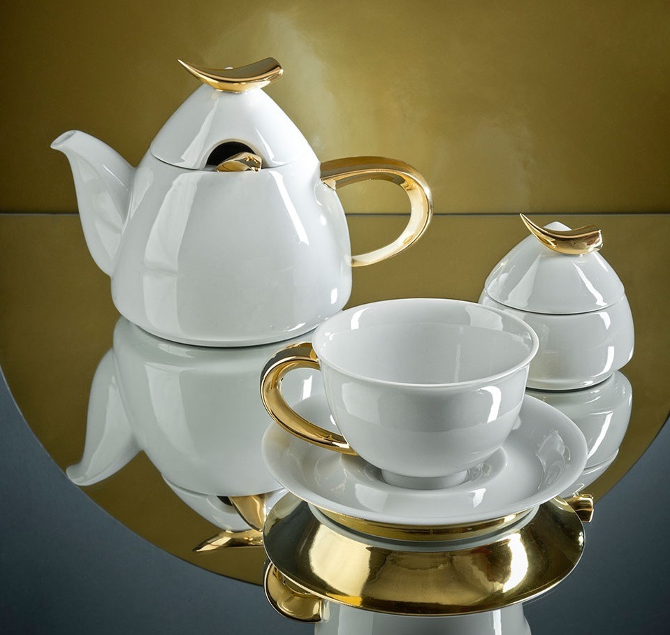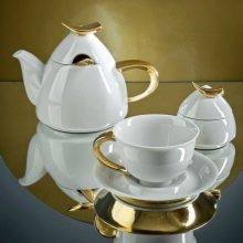 - Boss can be given a set of tea or coffee. This is a necessary thing that is useful during business negotiations. You should not choose the dishes in flowers, it is better to choose a set in discreet drawings and colors. An excellent option would be porcelain products of white or cream color with a gold border.
