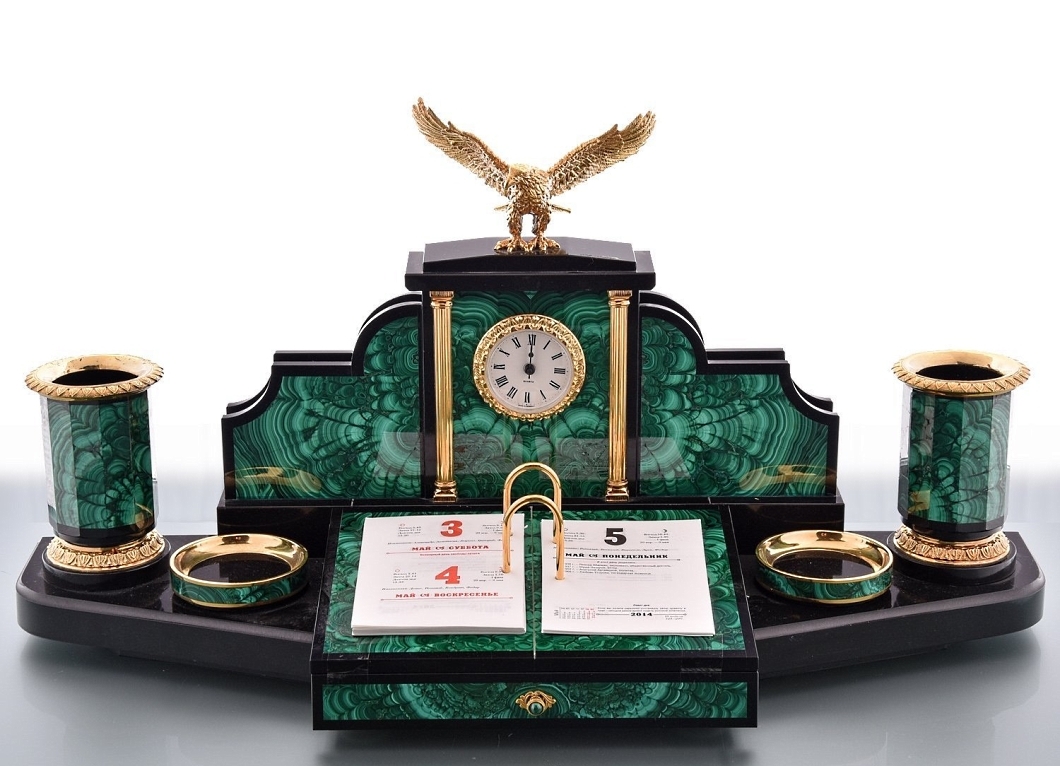 - A good option would be the elements of decor for the office. An artist can present an original watch, an unusual globe, an exquisite figurine, wood or stone products.