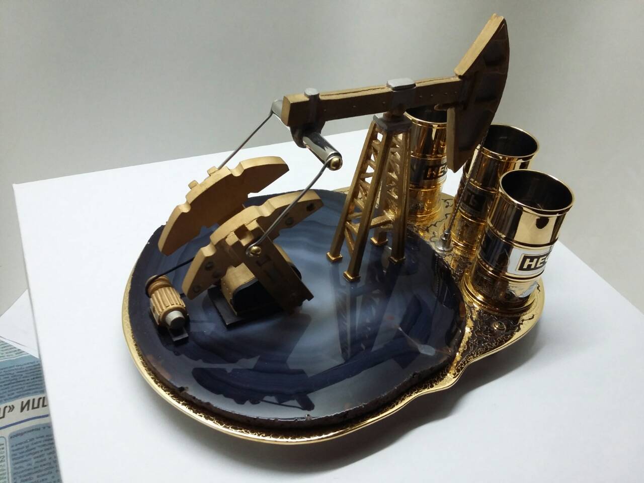 - Oilman He will be delighted with the Neftyanik business card stand, the Shelf table clock, and a scratch card on which he will mark all oil fields, drinking hot "types of oil" from stacks made in the form of oil barrels.