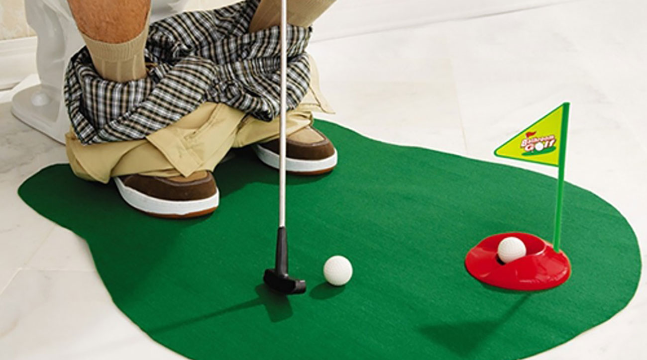 - Golf for playing in the toilet, toilet paper with jokes or toilet basketball. Your husband will not leave this secluded corner soon.