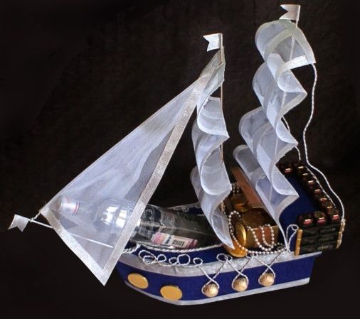 - Optionally, you can add a chest with coins, decorated to your taste. The final touch - put a bottle of alcohol in the hole. The gift is ready!