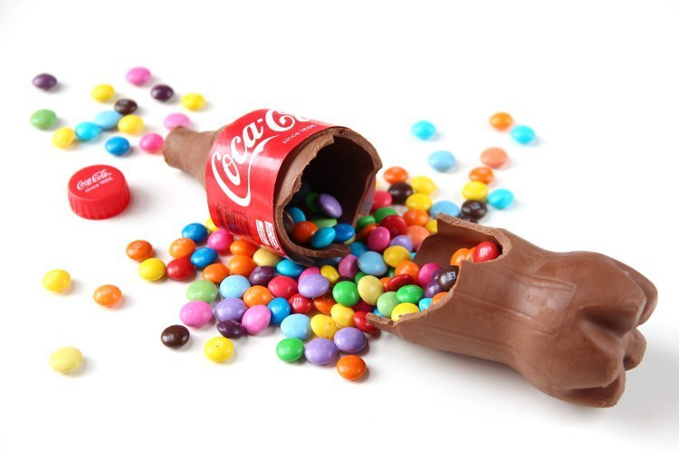 You can make such a creative gift, if you do not want to give alcohol. For this we need an empty Coca-cola bottle. First you need to melt the chocolate and pour about a quarter into the container. Until the chocolate froze, it should be gently distributed over the entire inner surface of the bottle, turning it around in a circle. Next, put the workpiece in the freezer.