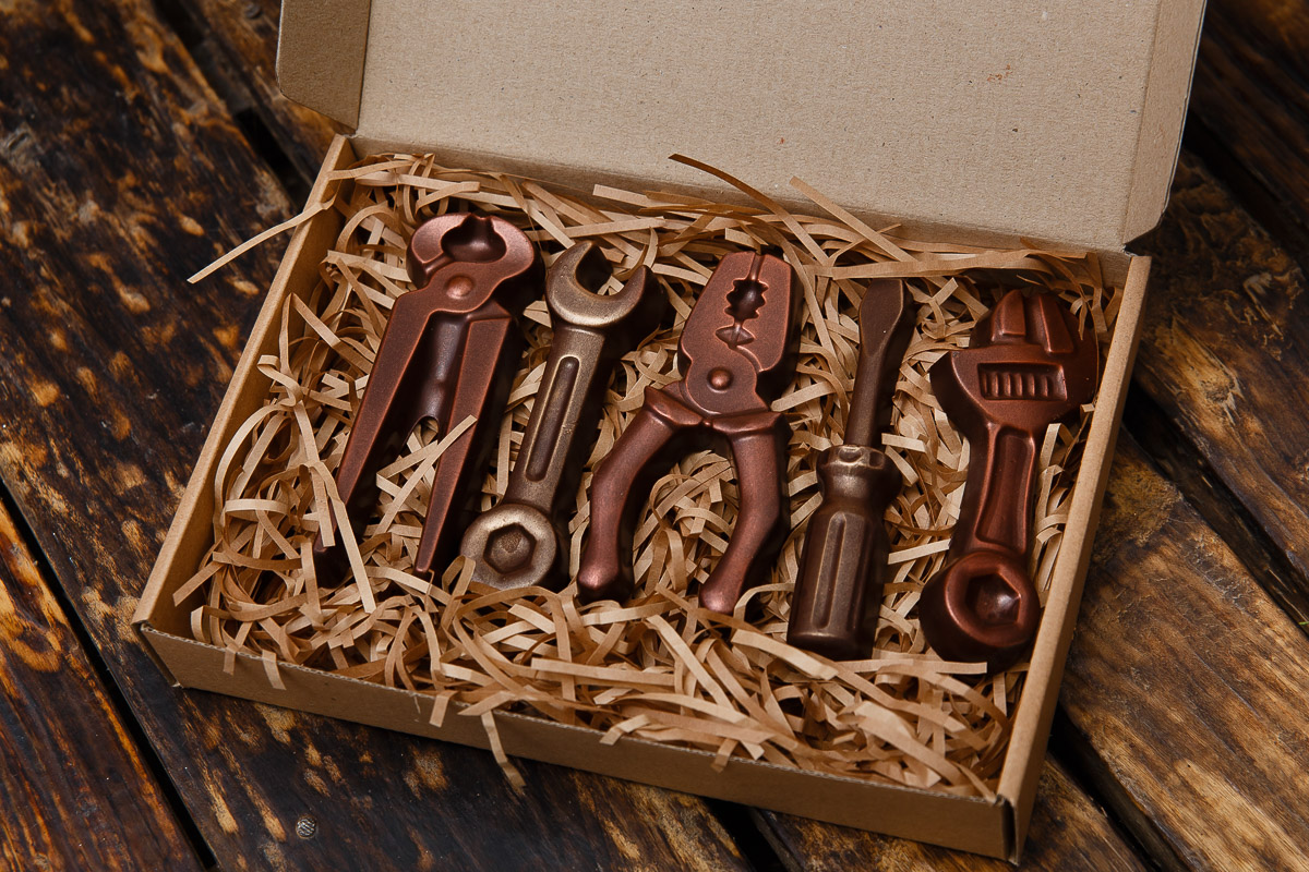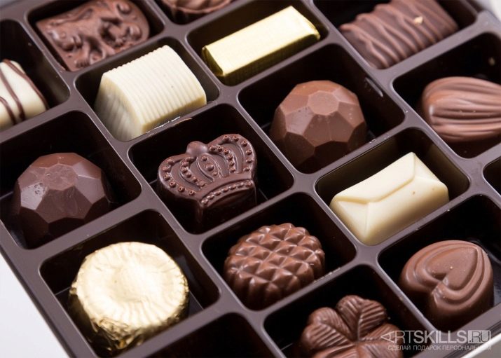 - A set of chocolates in a box. Chocolate may seem a trivial gift, but it is easy to purchase sets with handmade chocolate figurines with all sorts of additives of berries and fruits.