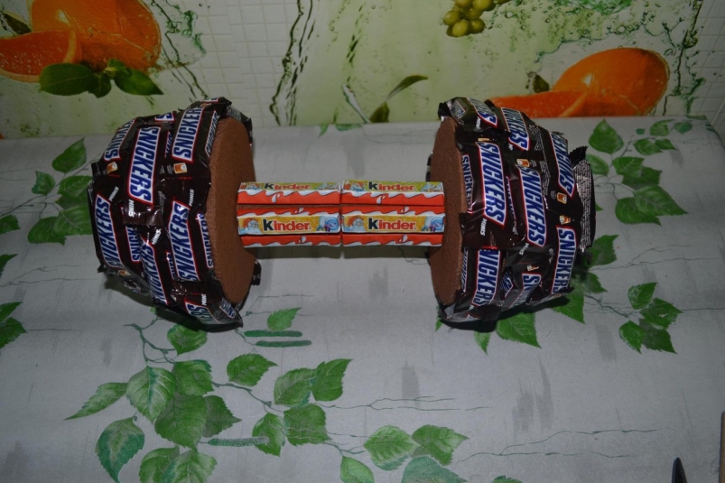 - Dumbbells. The athlete can be presented with chocolate dumbbells or the same sports equipment made of sweets. Such a joking gift - both tasty and pleasant!