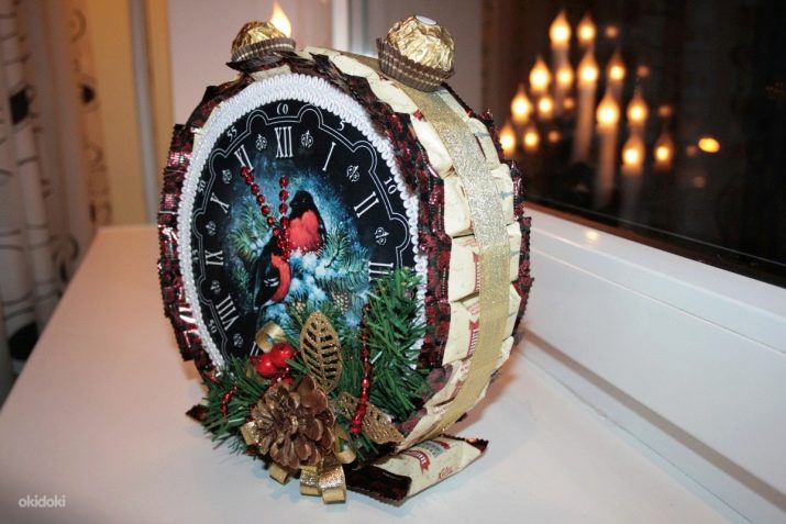 Put the dial out of edible beads glued with edible glue. You can also make the inscription colored marker, and put candy in the box. At the end decorate with the desired materials.