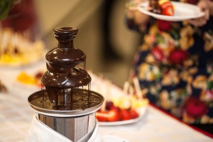 - Chocolate fountain. This idea is suitable for a romantic dinner, such a sweet fountain will decorate the table, you can serve pieces of fruit, berries and cheese to it.